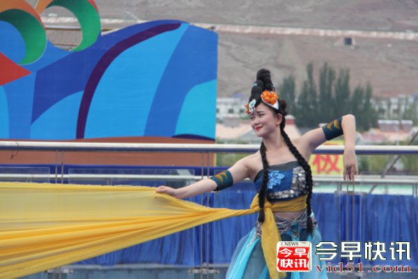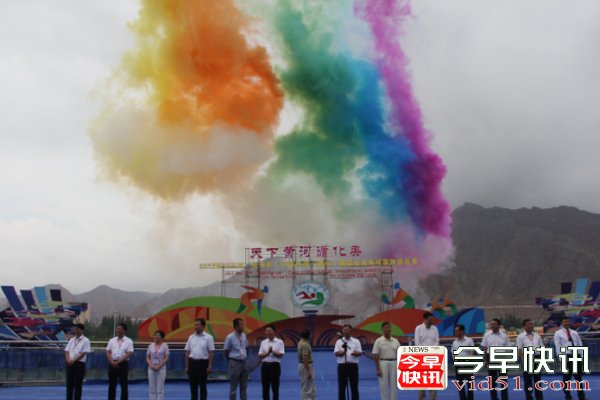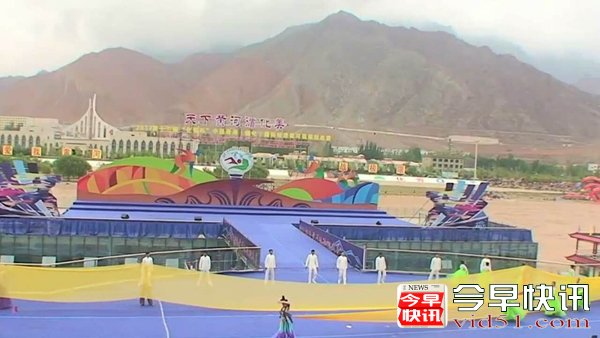 本次开幕式以6声钟声拉开帷幕,引出撒拉族东迁的历史,演绎了撒拉族在骆驼泉边安居乐业(晒秋、打墙)的场景。体现出撒拉族的民俗风情、民族特色,营造出载歌载舞的盛大场面。