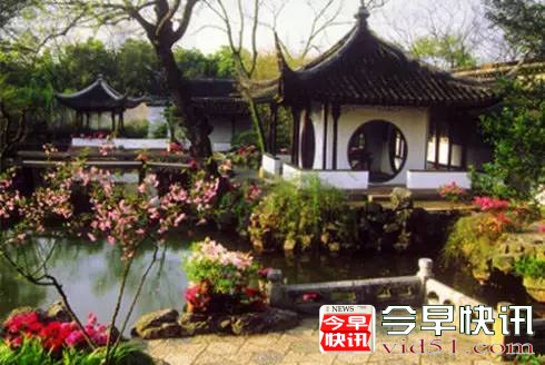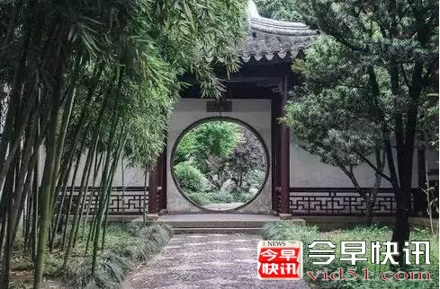 拙政园的梧竹幽居亭为方形,四面均开满月门,如环相套,如镜对影。透过圆门,山林、楼台、水池、花木于动静之间,变幻无穷。