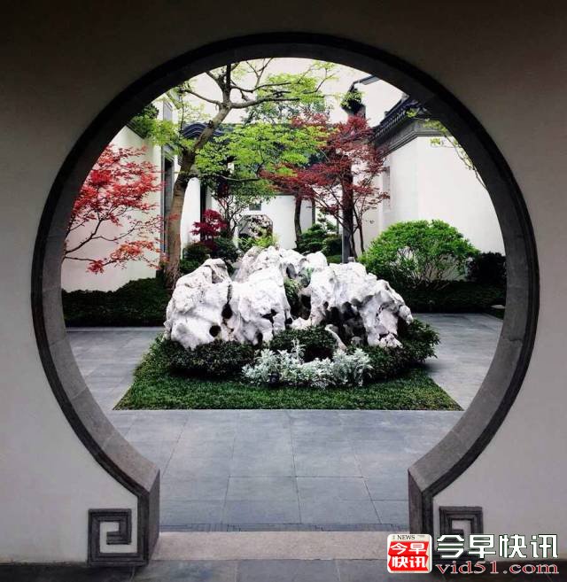 圆形门在苏州园林中最为常见。圆形门模仿圆月而筑,是月亮崇拜的物化。给人以饱满、活泼和平衡感。中国人喜欢满月,满月在整个循环周期中代表完整或完美,因此人们总是把满月与团圆联系在一起。佛教中的满月也是美好和安详的象征。月华如水,更符合中国人的诗意情结。