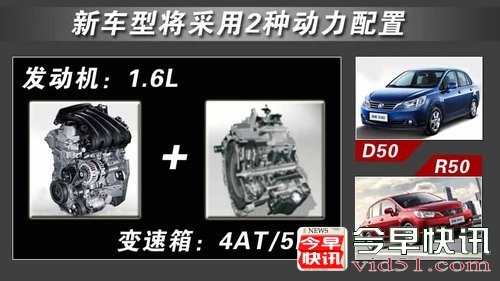 新款D50和R50两款车型在动力配置方面依然搭载现款车型上的1.6L引擎,并推出匹配5速手动变速箱与4速自动变速箱的两款车型。该1.6引擎最大功率可达86kW,最大扭矩153Nm。