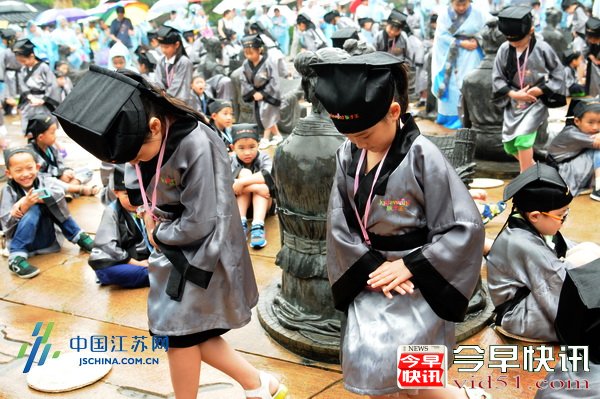 礼记》和《弟子规》而流传下来的“开学仪式”历经千年未改。而到了现代,“入学礼”被渐渐淡忘。“对现代的孩子来说,国学经典教育是最有价值、最优质的教育,是奠定他一生幸福的根本。”中国江苏网编辑中心储周主任告诉记者,在孔子塑像前举行国学入学仪式,以别开生面的穿汉服、拜老师、写书法的形式体验传统入学典礼,传扬国学精神,启迪心灵,从优秀的国学传统文化中汲取智慧。
