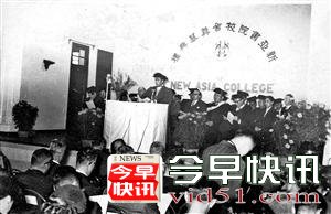1956年,钱穆先生出席新亚书院九龙农圃道校舍奠基典礼时在台上致词